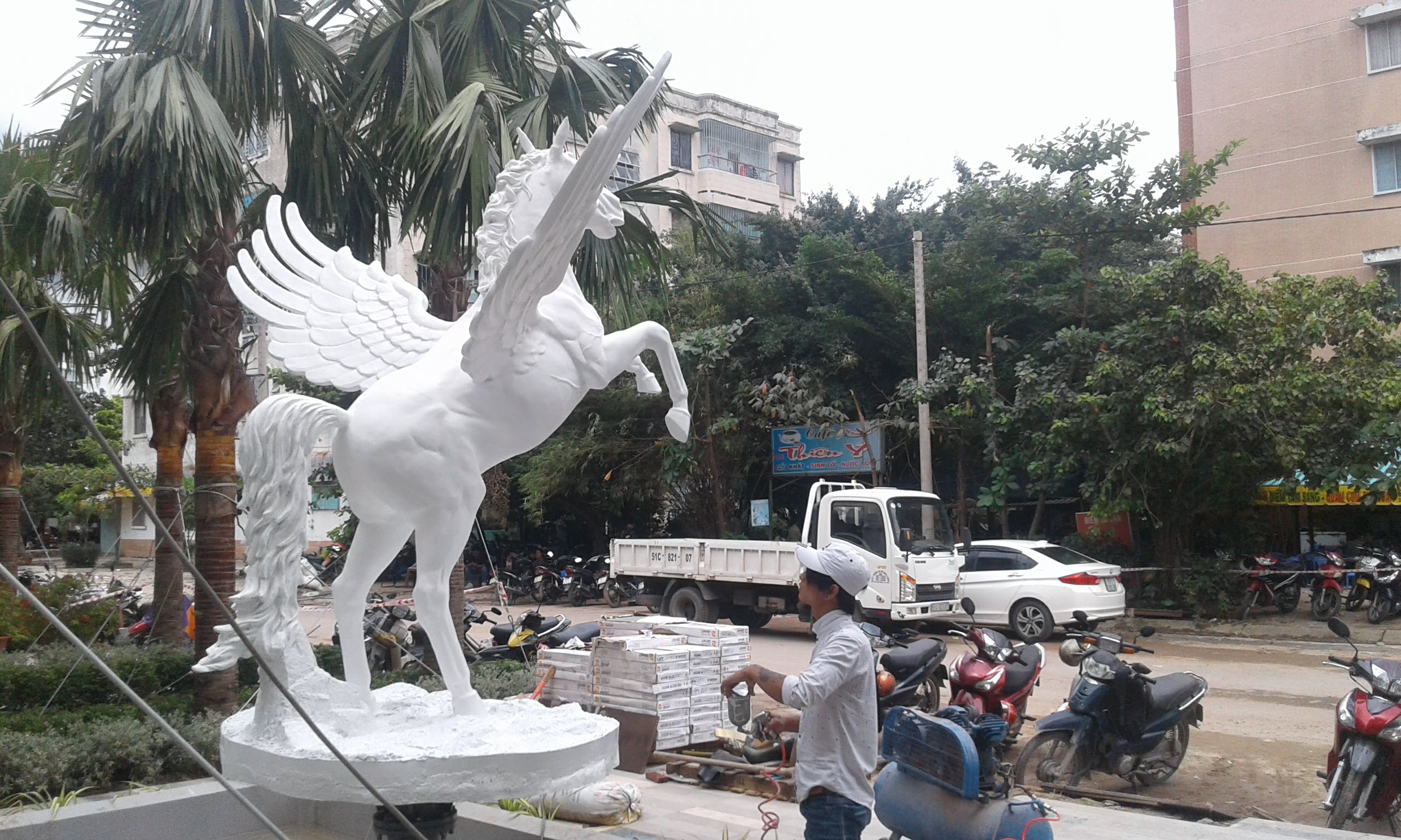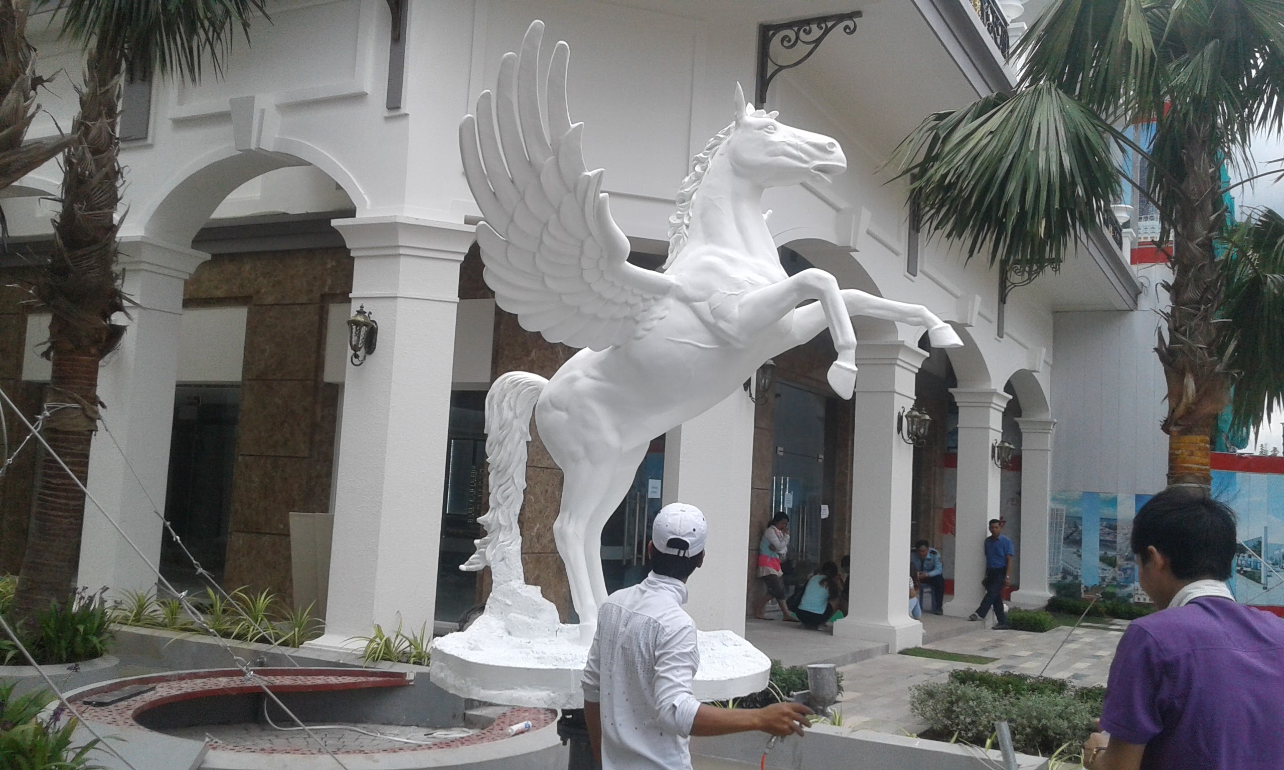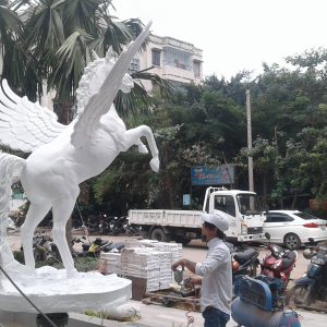 - Tạo hình linh hoạt: Nhựa composite cho phép tái hiện chính xác từng đường nét của chú ngựa Pegasus, từ cơ bắp cuồn cuộn đến đôi cánh mềm mại, mang lại một tác phẩm điêu khắc có tính thẩm mỹ cao.