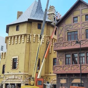 Ngoại thất NG004 là giải pháp kiến trúc độc đáo cho khu shopping, mang phong cách tân cổ điển lãng mạn hòa quyện cùng nét cổ tích huyền bí. Toàn bộ các chi tiết trang trí, từ phào chỉ, phù điêu đến tháp và cổng vòm, đều được chế tác từ vật liệu composite cao cấp. Với độ bền vượt trội, khả năng chống chịu thời tiết, chống ăn mòn và mối mọt, NG004 không chỉ tạo nên một không gian mua sắm ấn tượng mà còn là một điểm check-in “đẹp như mơ”, thu hút đông đảo khách tham quan tại khu giải trí.